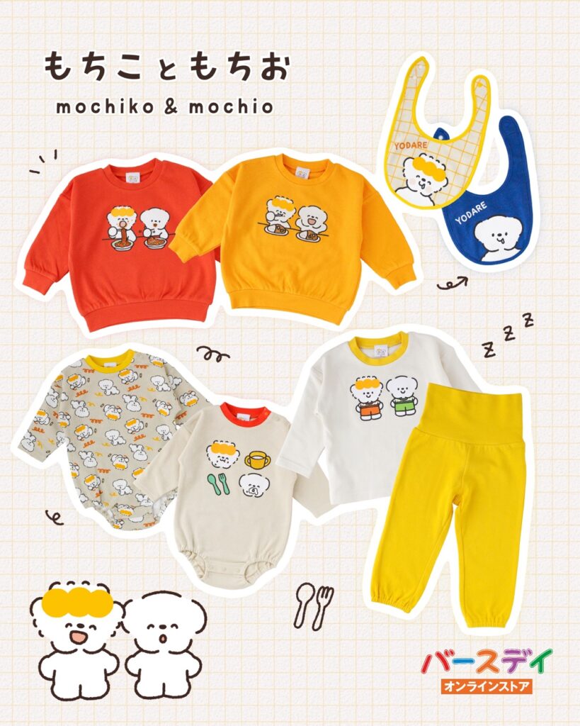 しまむらグループが展開するベビー・子供用品の専門店【バースデイ】より、「もちこともちお」のベビー服が販売されました。